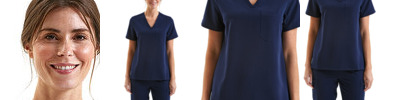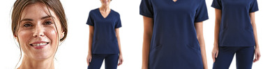 - V-neck style with left chest pocket and combined pen pocket