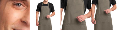 With three pockets on both sides, this durable, reversible apron is versatile, as well as stain and wrinkle resistant.